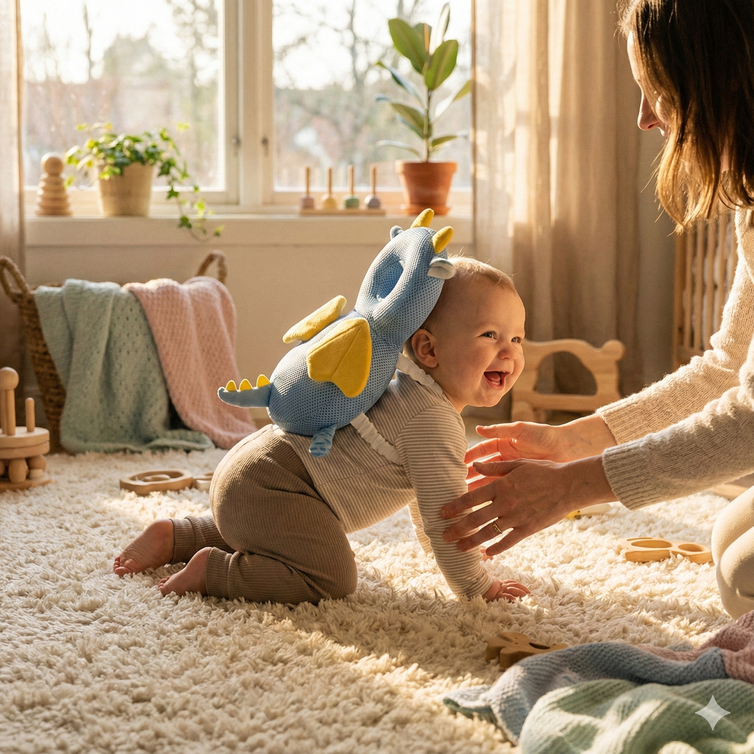 Engineered with premium shock-absorbing 3D cotton to shield your baby's head and back from backward falls. Give them the freedom to explore, tears-free.