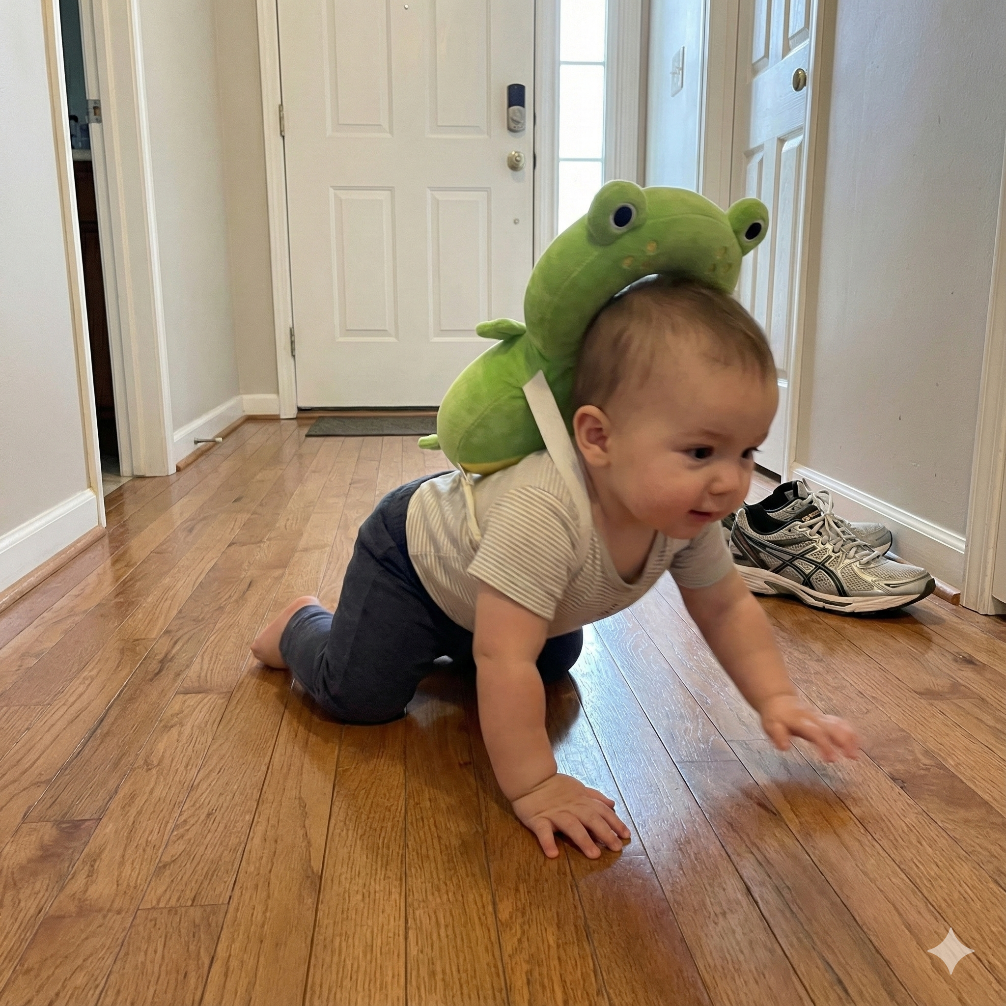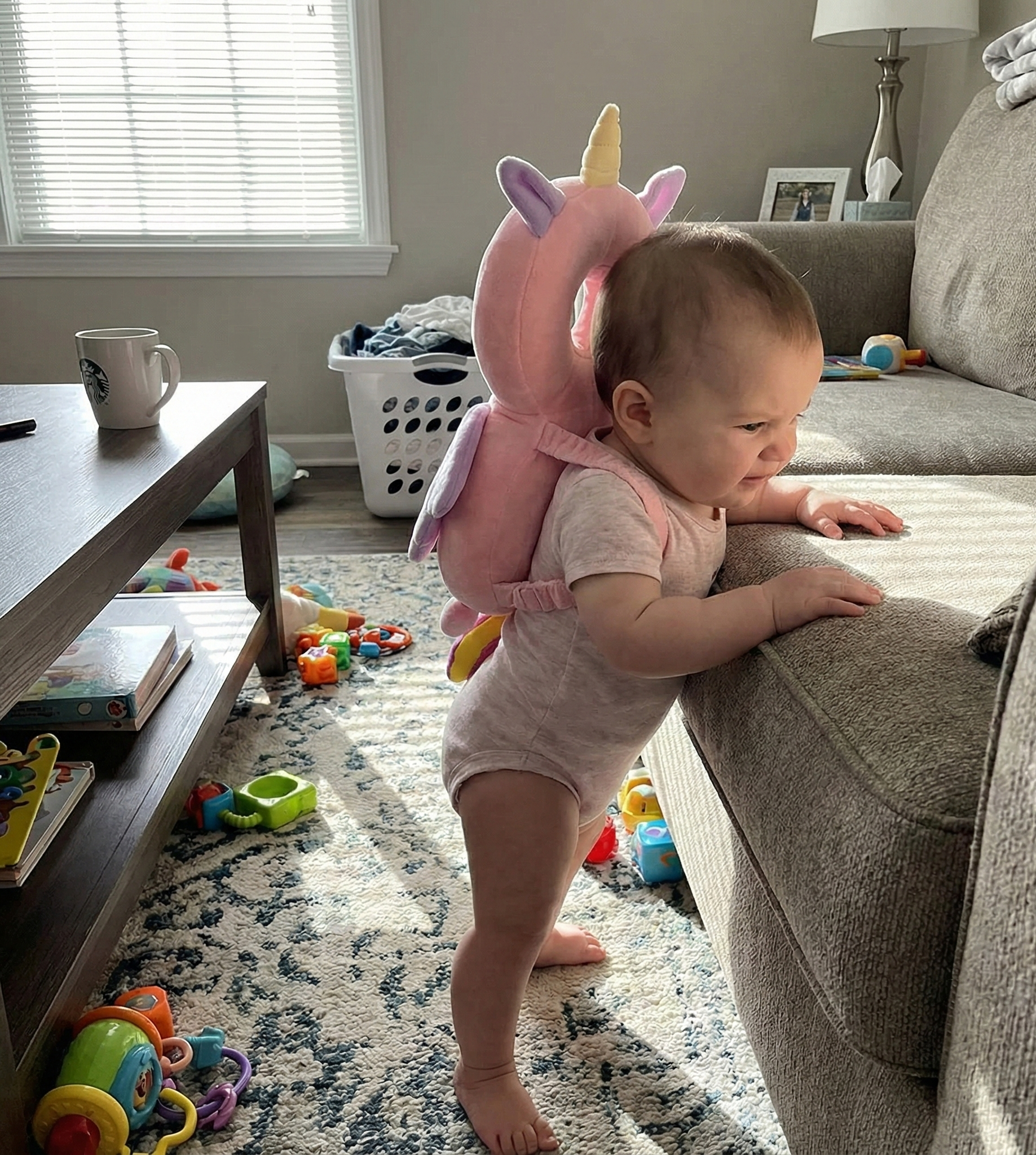 My little explorer is everywhere lately. This protector gives me the peace of mind I need while he's learning to stand. It's so light he doesn't even notice it's on! No more 'ouchies' in our house.